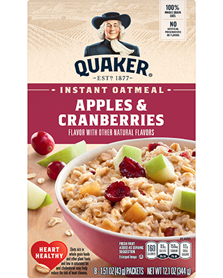 Disfruta de un desayuno reconfortante y lleno de sabor con Quaker Instant Oatmeal Apples & Cranberries — una avena instantánea con el delicioso toque de manzana...