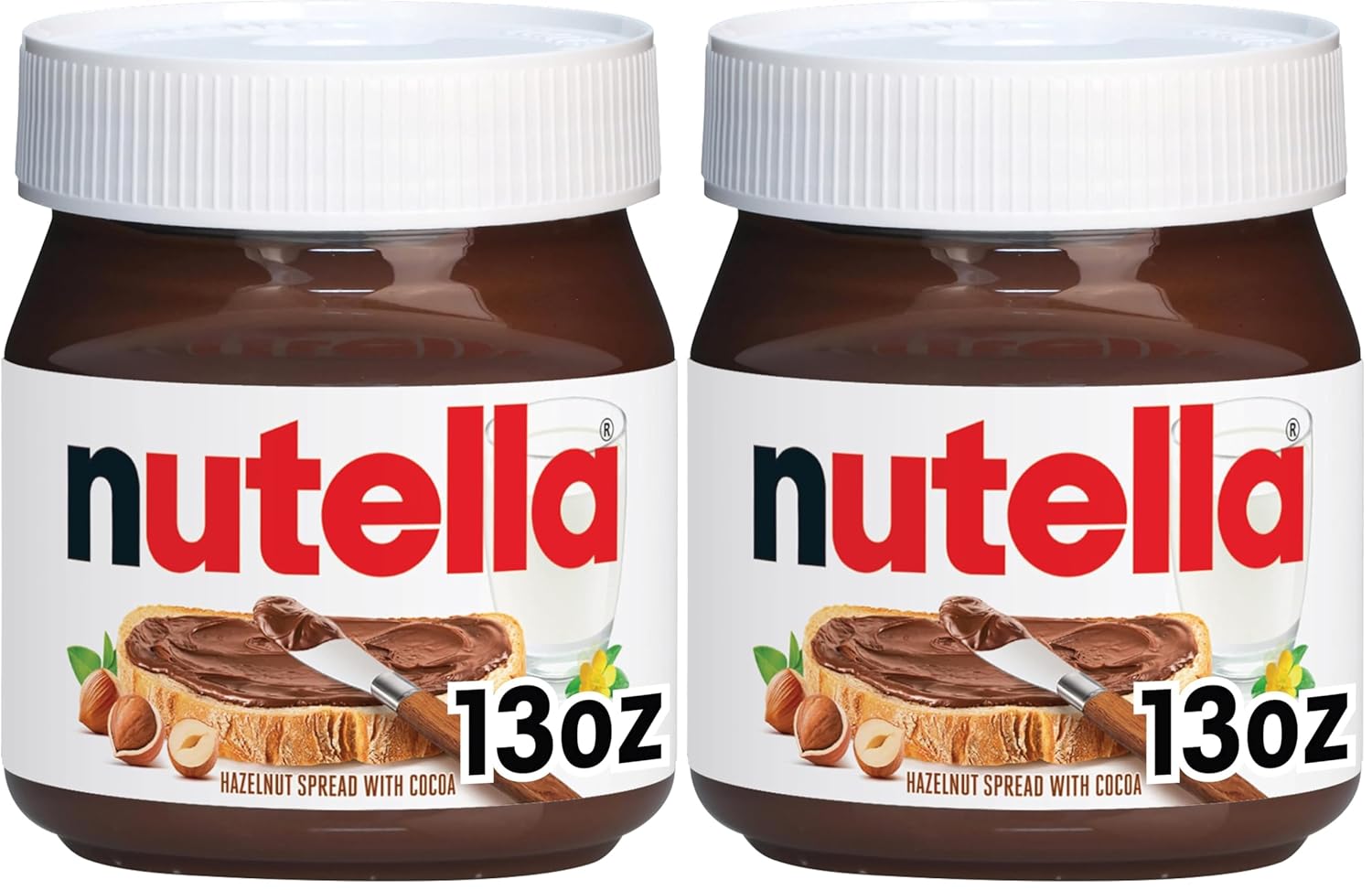 Pack de 2 frascos de 13 oz: ideal para familias, oficinas o amantes de Nutella que disfrutan usarla a diario.